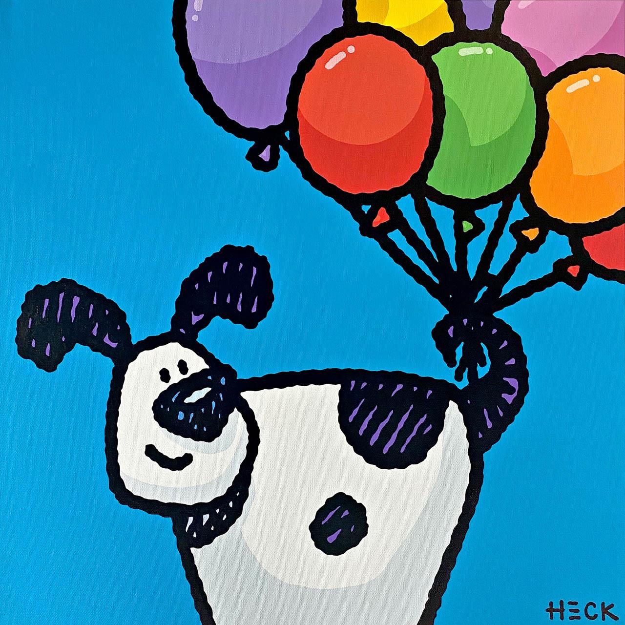 Rasch entwickelte Ed Heck sein Markenzeichen und Lieblingssujet: den weißen Hund mit großen schwarzen Flecken und langen schwarzen Ohren, dessen Hundeblick zuweilen etwas perplex und verwirrt erscheint - einen liebenswerten kleinen Kerl, der dem Betrachter ein Lächeln ins Gesicht zaubert. Dieser Hund, der vom Künstler eher zufällig auf einem Bild festgehalten wurde, hat sein lebendes Pendant im "Puggle" Max (eine Kreuzung aus Mops und Beagle), dem der Künstler ein Zuhause gab. Der beste Freund des Menschen bekommt bei Ed Heck menschliche Züge und wird daurch noch liebenswerter.